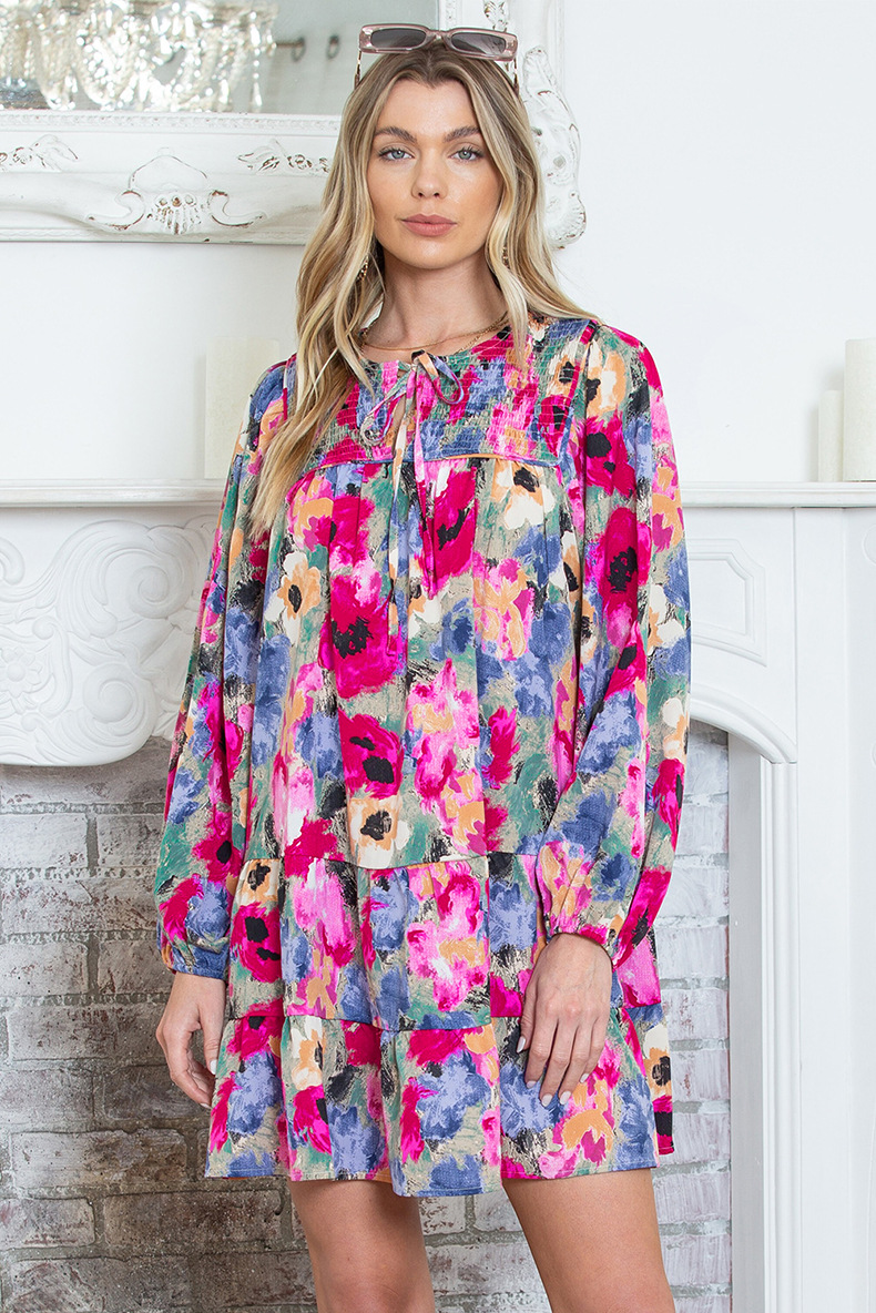 Pullover All-matching Floral Print Dress Women