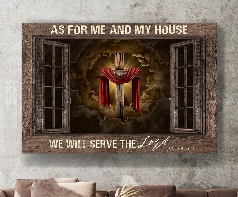 Christian Home Decor, Wooden Window As For Me And My House We Will Serve The Lord Canvas Wall Art ,Christian Canvas